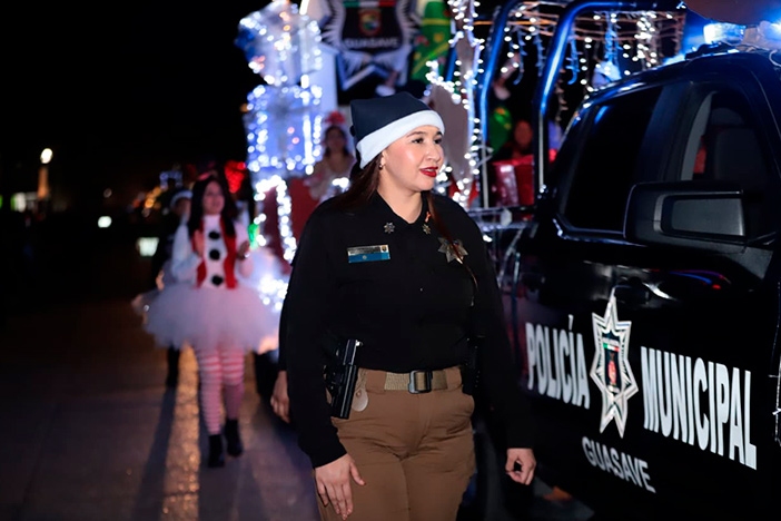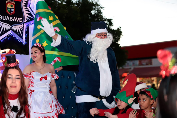 Renos, Santas, ángeles, elfos, grinchs, personajes de Disney, los Reyes Magos, estrellas, nacimientos y hasta la Fábrica de Dulces, llegaron cargados de alegría a Guasave en El Mundo de Santa Claus y las Villas Navideñas, el tradicional desfile decembrino de UPES Subsede Guasave. Elementos de la Secretaría de Seguridad Ciudadana y Movilidad Sustentable y Protección Civil por primera vez se sumaron al contingente navideño, incluyendo la Unidad de Género y la Ambiental. El Ayuntamiento apoyó la organización y la seguridad.