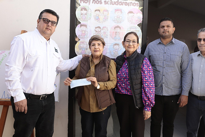 En este recorrido, el presidente de la AARSP, Teodoro López Menchaca, entregó a la alcaldesa y a la presidenta de DIF Guasave, Ana Luisa León Perea, un cheque con la aportación de los socios para el pago de la renta de este inmueble.