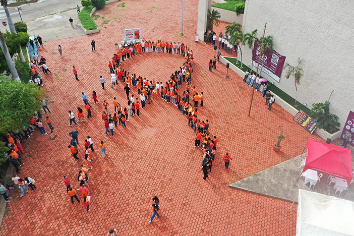 En el evento, en la explanada del Auditorio Héroes de Sinaloa, los asistentes formaron un lazo naranja humano, como símbolo de fortaleza y unidad.