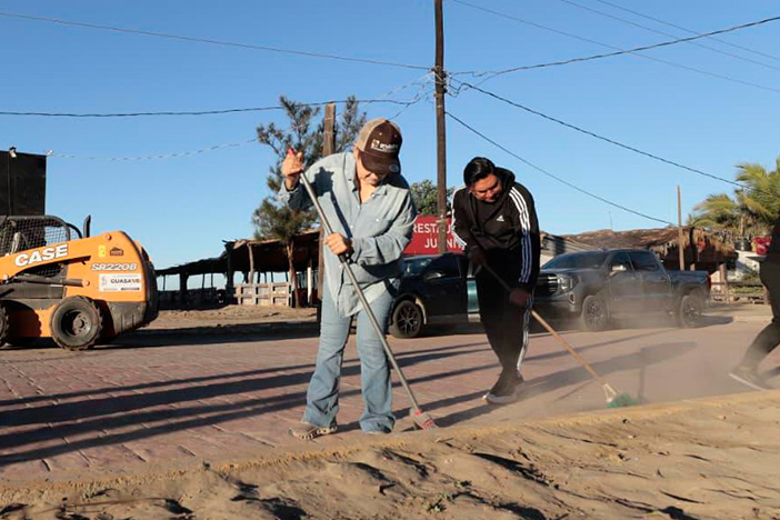 Además del barrido manual, trabajadores y funcionarios retiraron arena y se usó maquinaria.