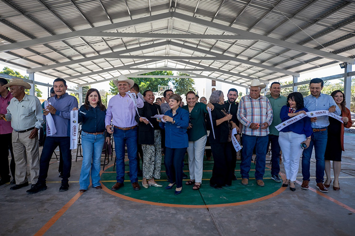 Guadalupe Gutiérrez y el presidente del Comisariado Ejidal, Feliciano López Gaxiola, agradecieron a la presidenta municipal esta techumbre, para que las familias tengan un lugar digno y seguro para hacer eventos y practicar el deporte.