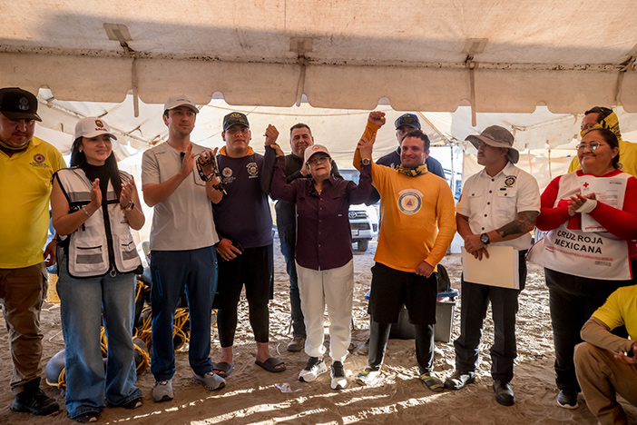 Reconoció el trabajo de la Dirección General de Salud con módulos de 24 horas; de Protección Civil y los equipos del Ayuntamiento y fuerzas de seguridad, pero particularmente destacó a los elementos de Bomberos y de Protección Civil, Martín Leyva y Kevin Villegas, que son unos héroes por el rescate de bañistas en playas.